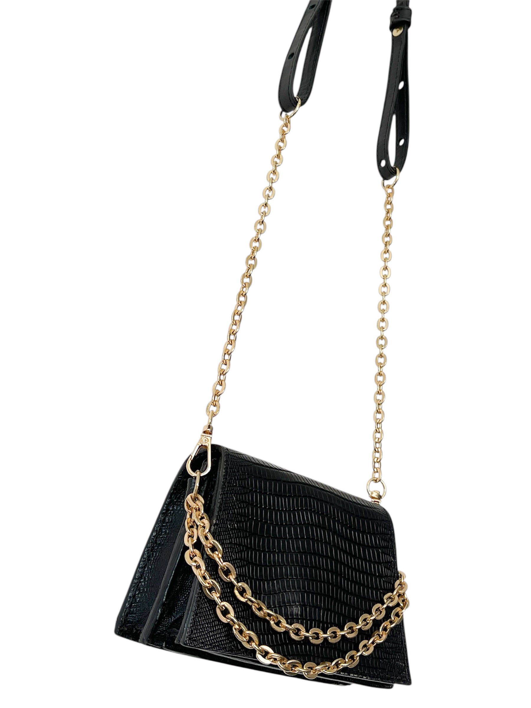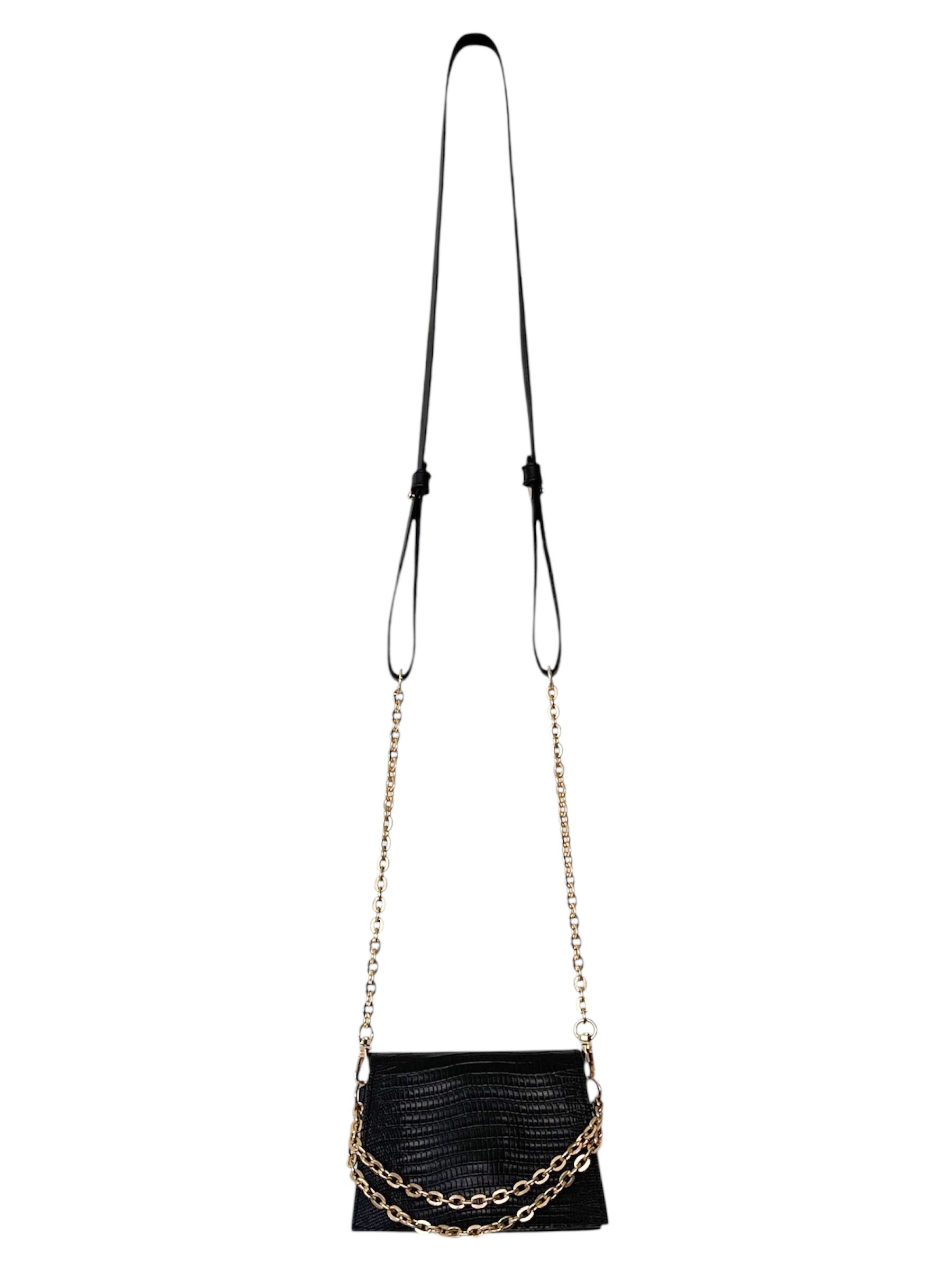 Esta mini cartera, elaborada al 100% en cuero y a mano , combina un diseño impecable con una estética atemporal que realza cualquier look. Su cadena dorada aporta un toque de fuerza y sofisticación, mientras que su strap eleva la pieza con un carácter exclusivo.