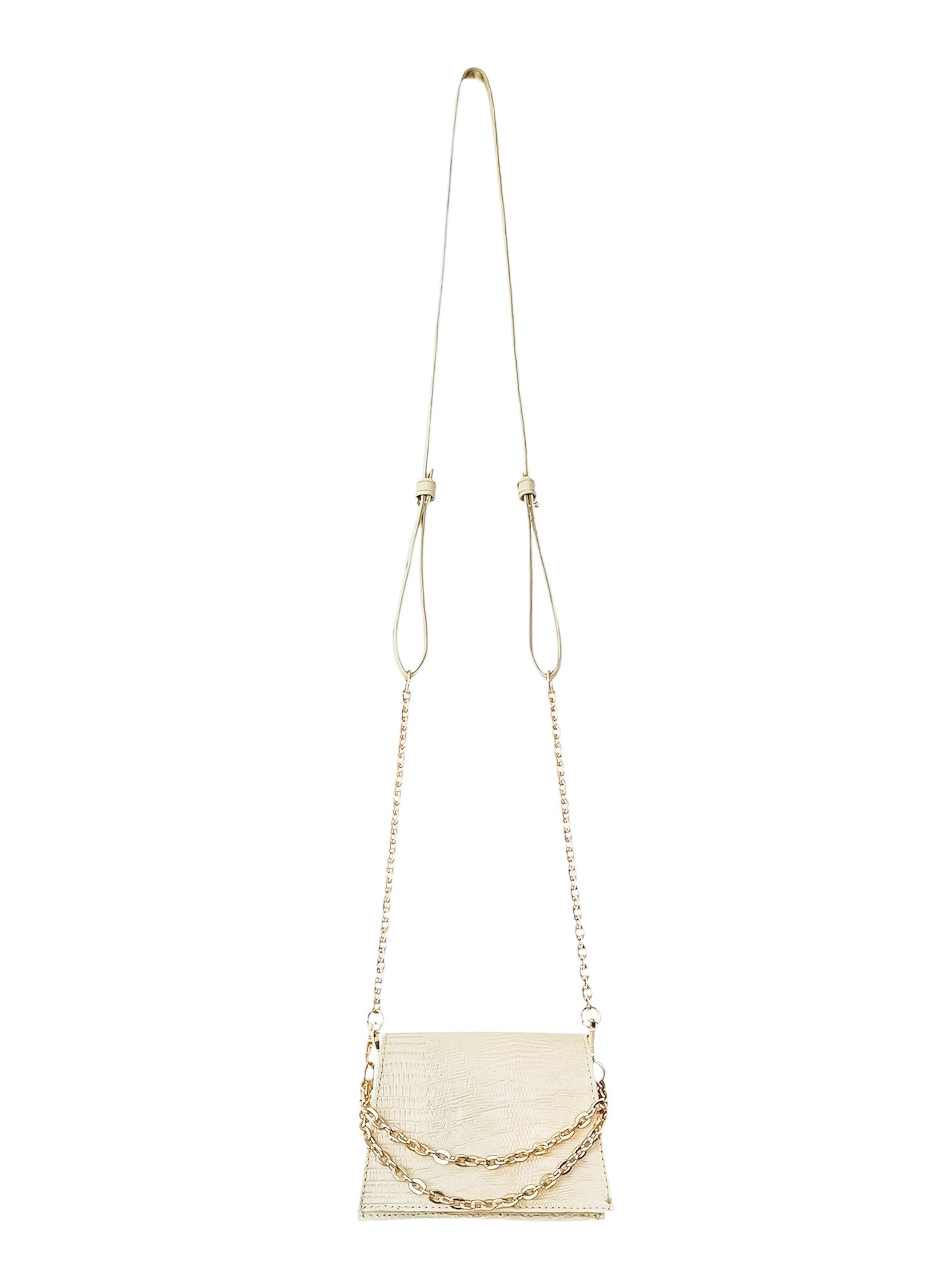 Esta mini cartera, elaborada al 100% en cuero y a mano , combina un diseño impecable con una estética atemporal que realza cualquier look. Su cadena dorada aporta un toque de fuerza y sofisticación, mientras que su strap eleva la pieza con un carácter exclusivo.